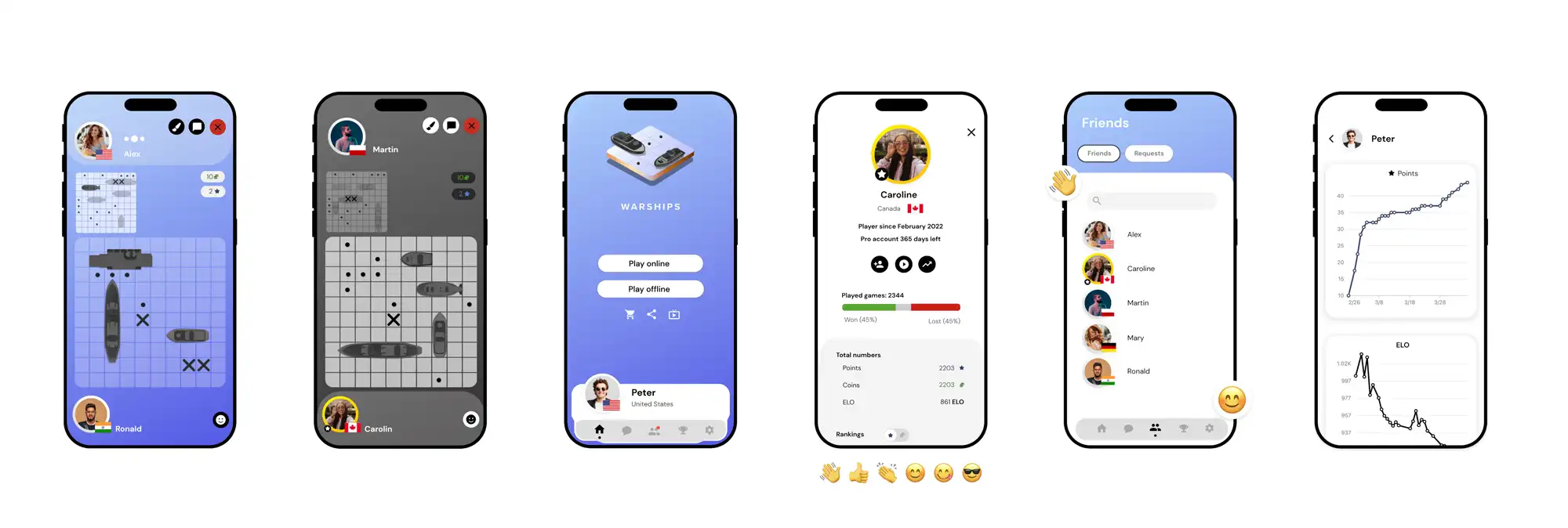 Cards are leading to home - containing main functions, chat, friends, achievements and settings in the game.