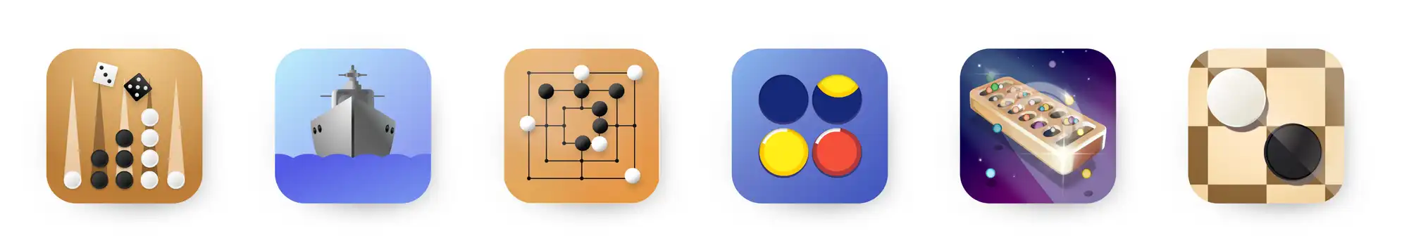 Collection of well-known game apps in minimalistic design.